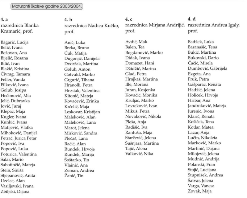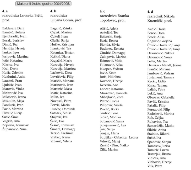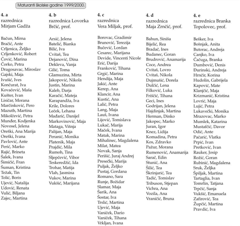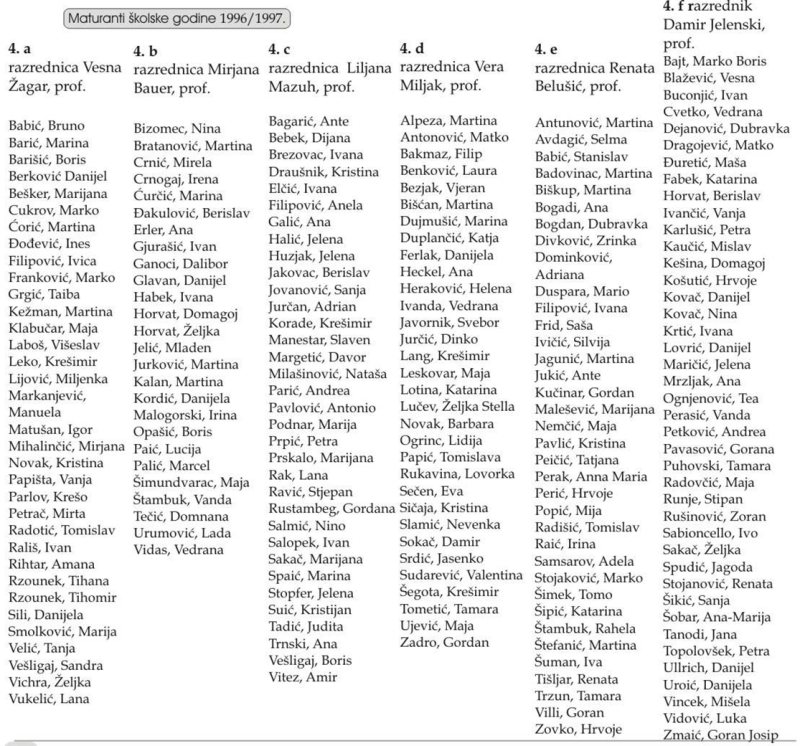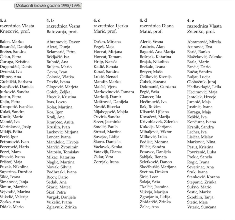 POPIS SVIH UČENIKA GTB (maturanata) od 1992. do 2023.
